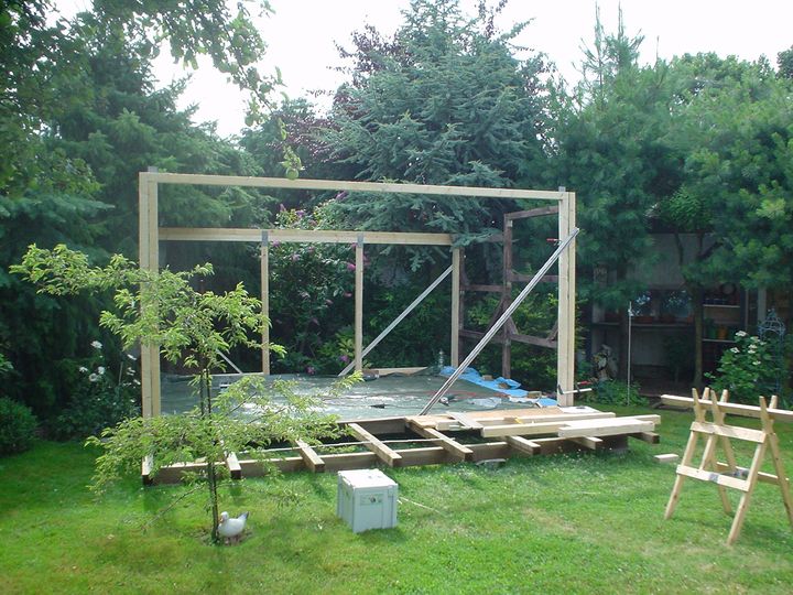 Wichtigstes Projekt für 2004 ist der Bau des Gartenhauses. Das Haus wächst.