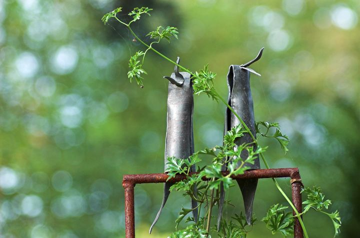 Unsere beiden Bleivögel, die immergrüne Clematis wächst auch langsam in die Höhe